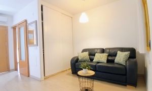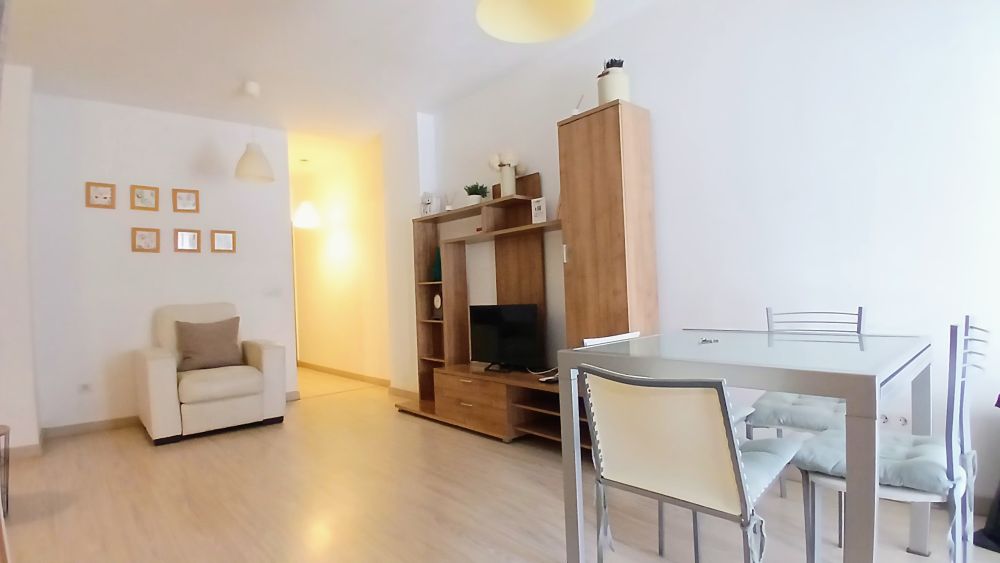 Al entrar te encontrarás en un amplio salón comedor, con un armario empotrado para guardar tus abrigos , ropa de cama o almacenar simplemente lo que necesites con aire acondicionado por split frio/calor. Suelo de tarima flotante lo que le da más calidez de hogar.