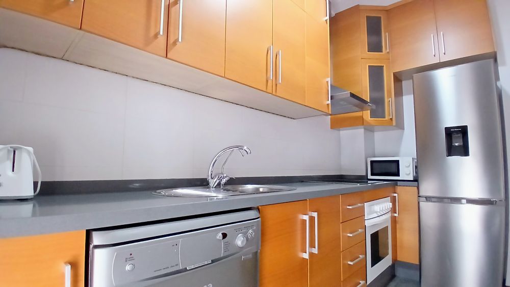 La cocina es independiente con mucha capacidad de almacenaje, un frigorífico grande , microondas y lavavajillas.