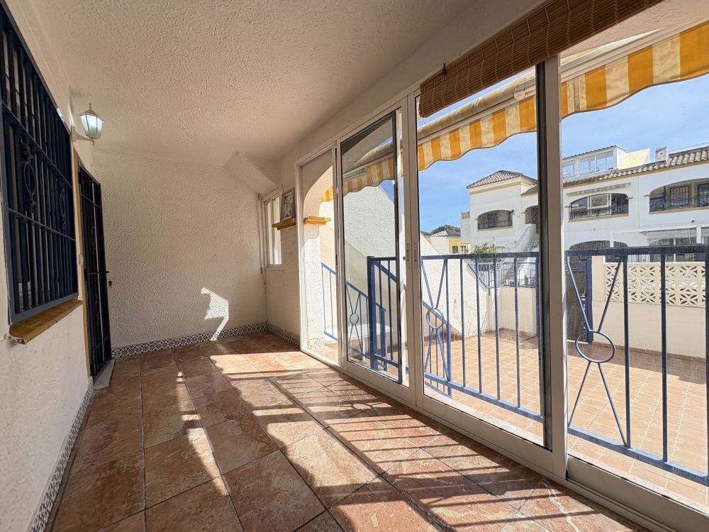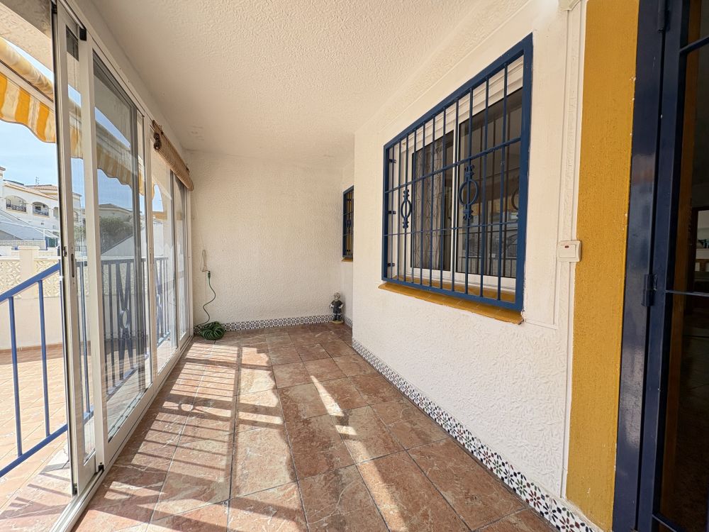 Gran terraza de entrada y terraza de entrada cerrada con puertas correderas para disfrutar abierta en verano y cerrada en invierno. Trastero exterior y espacio para aparcar el coche además del parking comunitario que ofrece la urbanización al ser cerrada.