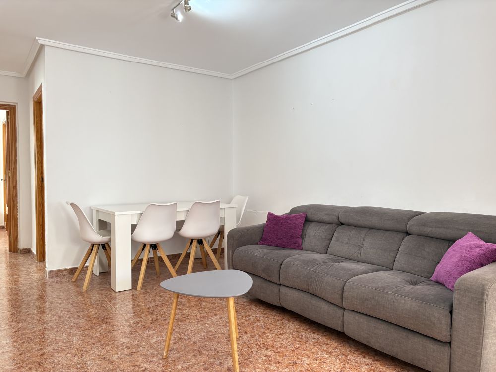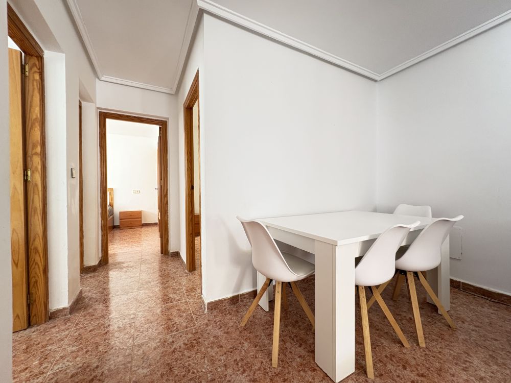 La vivienda es en esquina, con mucha luz natural, exterior, se compone de 3 cómodas habitaciones con ventiladores de techo, 1 baño completo, patio interior, cocina con electrodomésticos y cómodo salón-comedor.