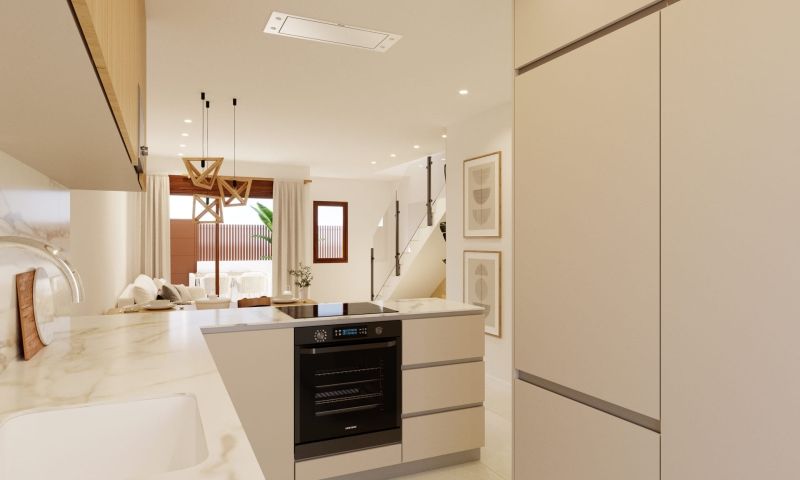 Ubicado en la hermosa zona de Orihuela Costa, este conjunto residencial ofrece 13 adosados diseñados para quienes buscan confort y funcionalidad. Cada vivienda está pensada para maximizar el espacio y la comodidad, con una distribución que incluye tres dormitorios y tres baños. La ubicación es ideal para los amantes del golf, ya que se encuentra a solo 1 km de distancia de un campo de golf, lo que permite disfrutar de este deporte en un entorno privilegiado. EXTERIORES Los adosados cuentan con un diseño exterior que incluye terrazas y jardines privados, ideales para disfrutar del clima mediterráneo. Además, existe la opción de añadir un solárium, lo que permite aprovechar al máximo las vistas y el sol durante todo el año. Las áreas comunes están rodeadas de jardines bien cuidados, proporcionando un ambiente tranquilo y relajante para todos los residentes. INTERIORES En el interior, las viviendas están equipadas con suelos de gres porcelánico, que aportan un toque de elegancia y durabilidad. Los adosados disponen de persianas eléctricas y videoportero, garantizando comodidad y seguridad. La preinstalación de aire acondicionado y los electrodomésticos incluidos facilitan la vida diaria. Los armarios empotrados ofrecen un espacio de almacenamiento eficiente, manteniendo el orden y la organización en cada habitación. ZONAS COMUNES El residencial dispone de amplias zonas comunes que incluyen una piscina comunitaria, perfecta para refrescarse durante los meses más cálidos. También cuenta con un garaje comunitario, proporcionando comodidad y seguridad para los vehículos de los residentes. Las áreas ajardinadas y el parque infantil son ideales para el disfrute de toda la familia, ofreciendo espacios para el ocio y la recreación.Especificaciones